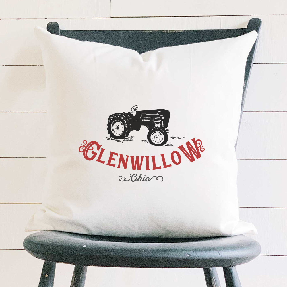Vintage Icon (Tractor) City/State - Custom Square Canvas Pillow