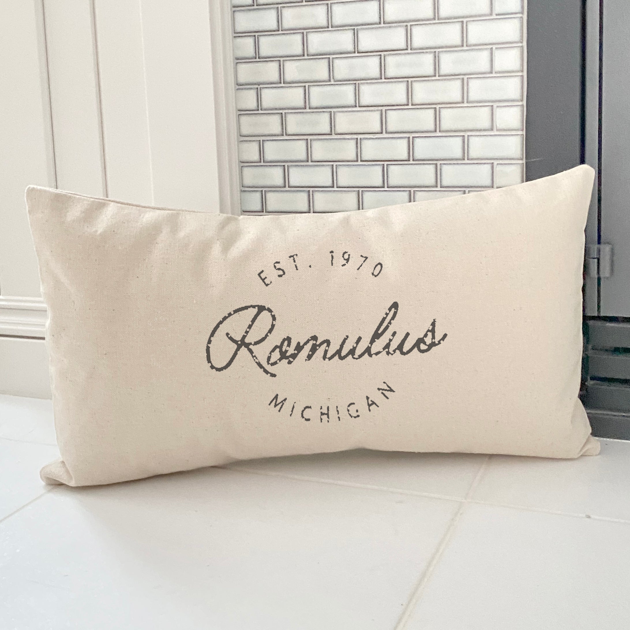Vintage Script City w State EST - Custom Rectangular Canvas Pillow