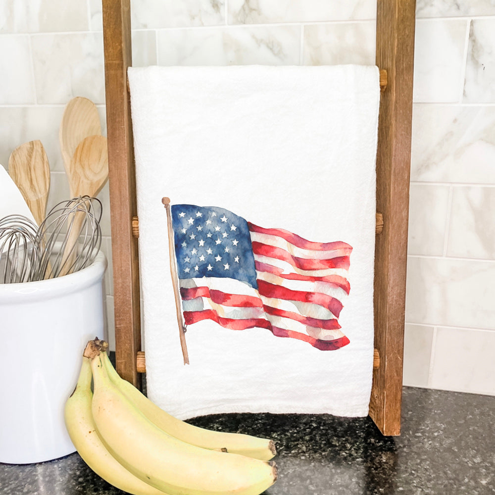 Watercolor American Flag - Cotton Tea Towel