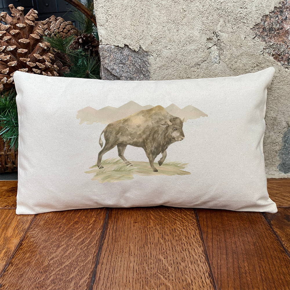Watercolor Bison Scene - Rectangular Canvas Pillow