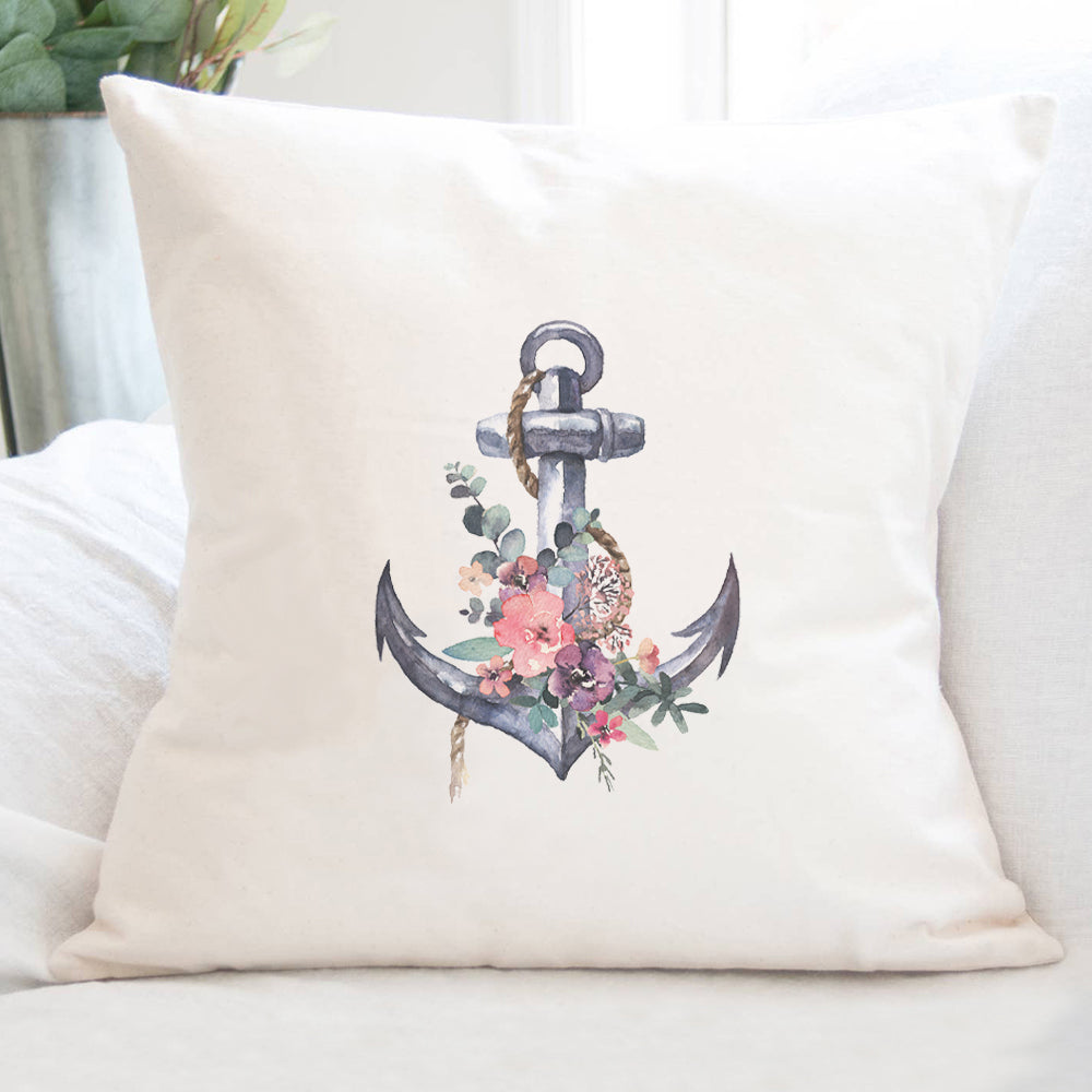 Watercolor Floral Anchor - Square Canvas Pillow