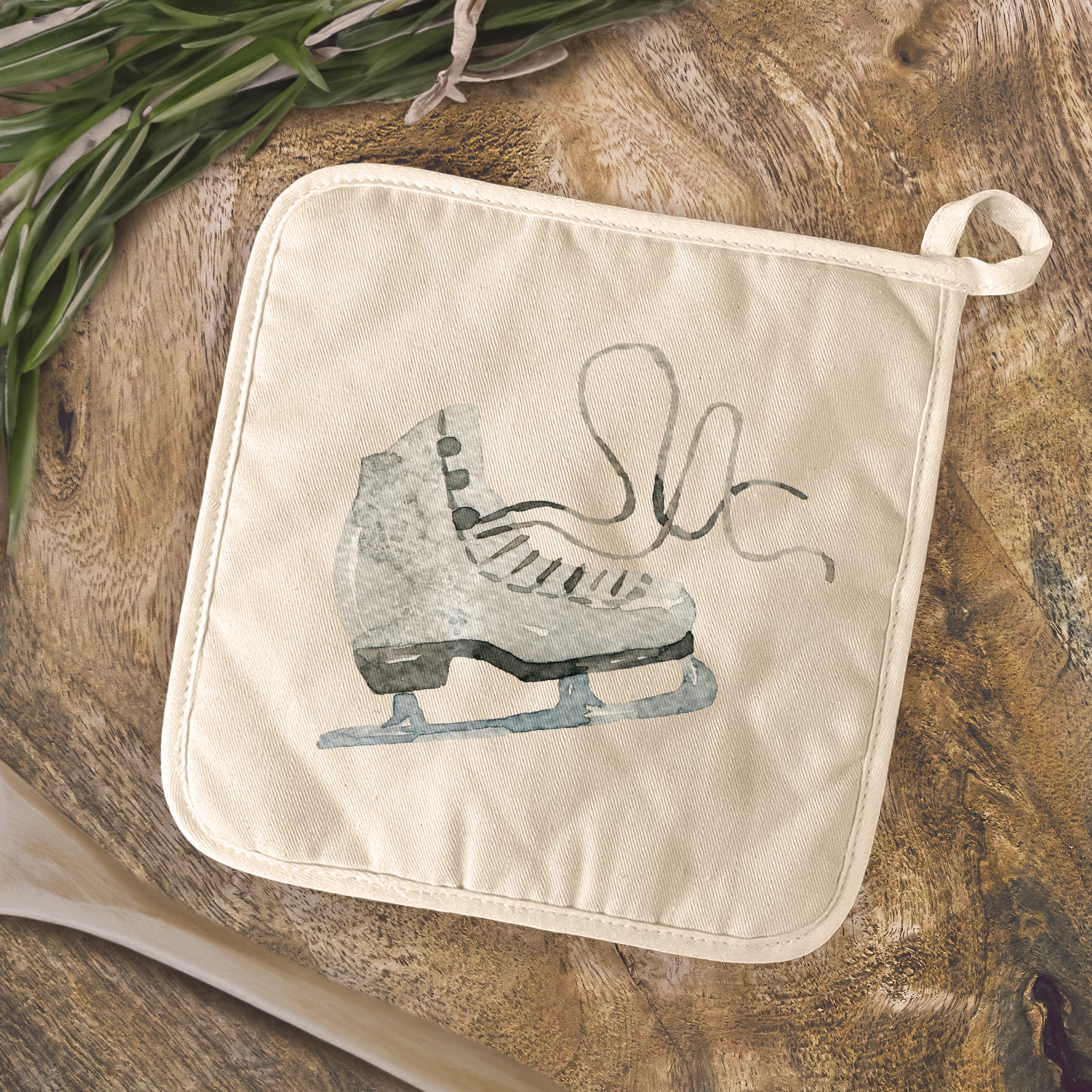 Watercolor Ice Skate - Cotton Pot Holder