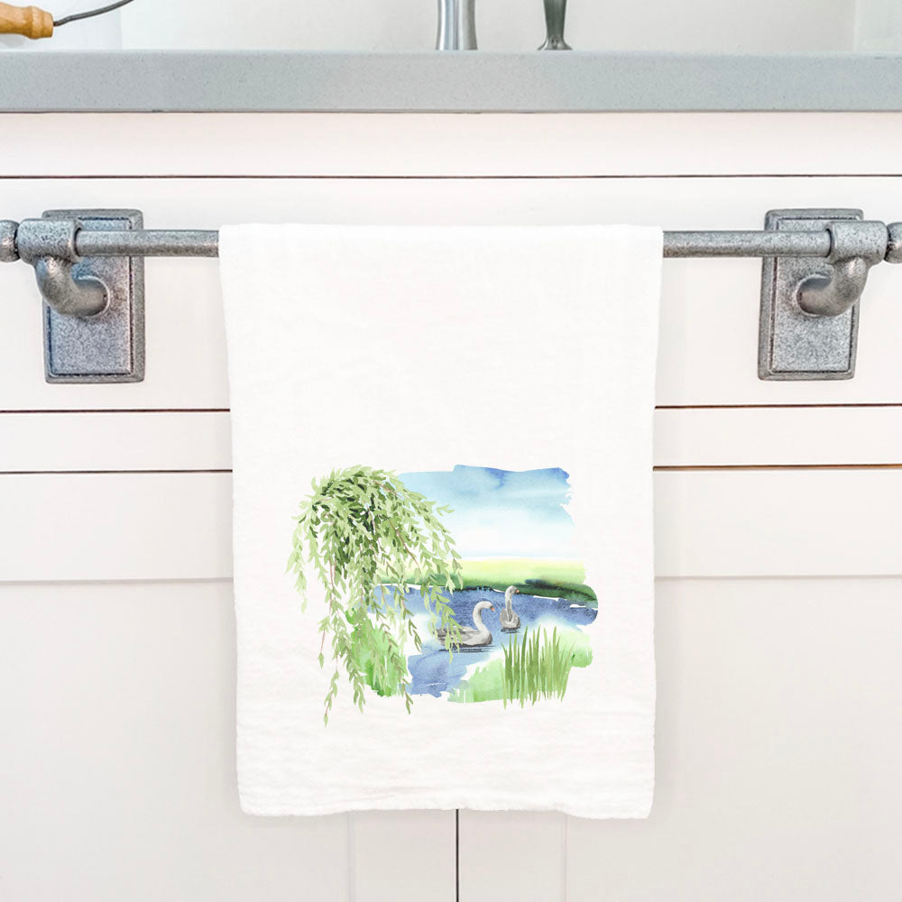 Watercolor Pond Scene (Swan) - Cotton Tea Towel