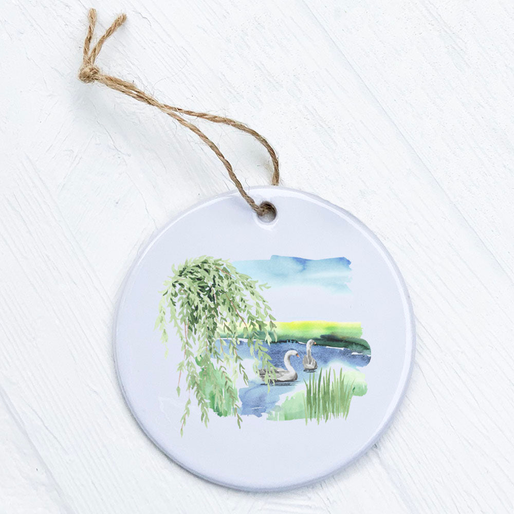 Watercolor Pond Scene (Swan) - Ornament