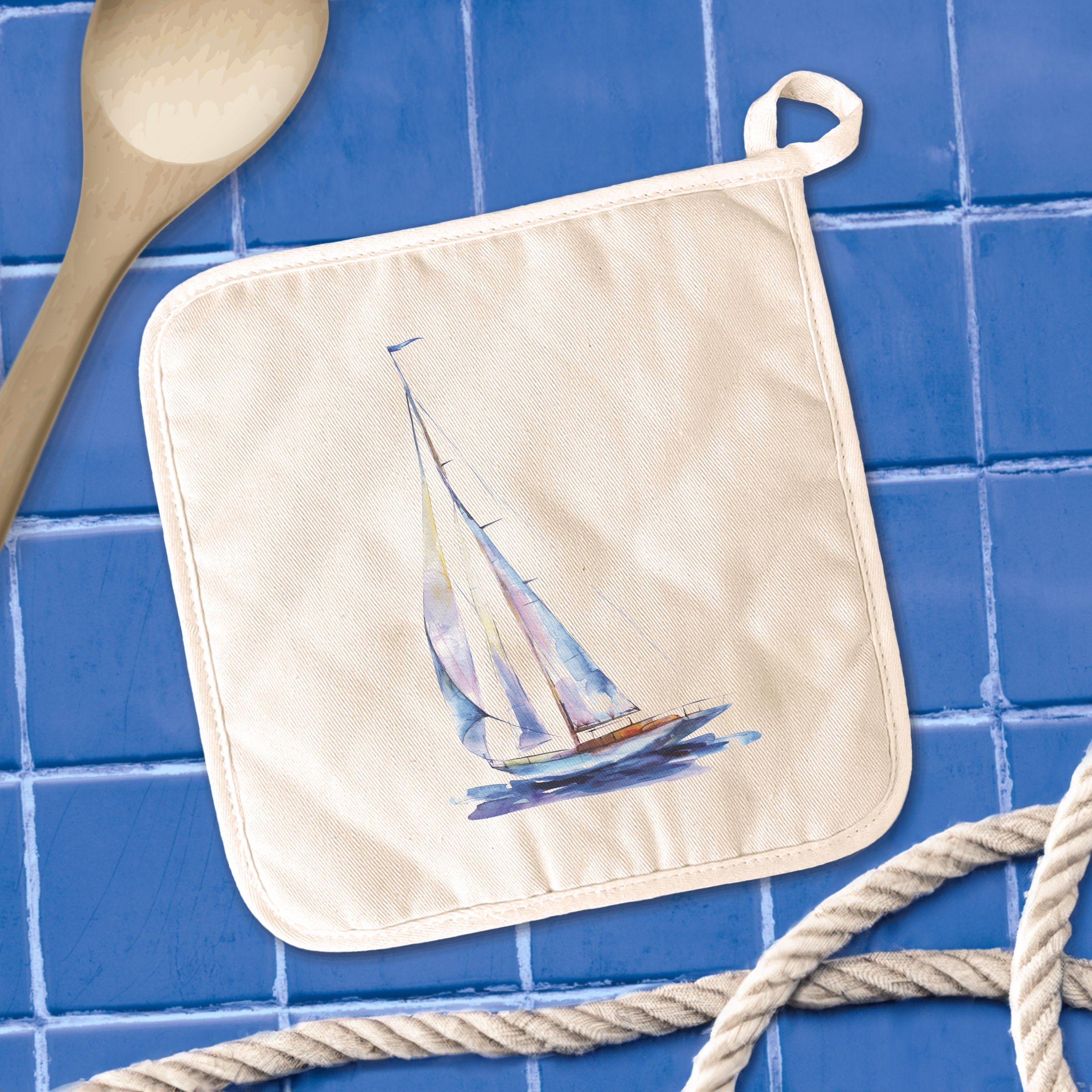 Watercolor Sailboat (Blue) - Cotton Pot Holder
