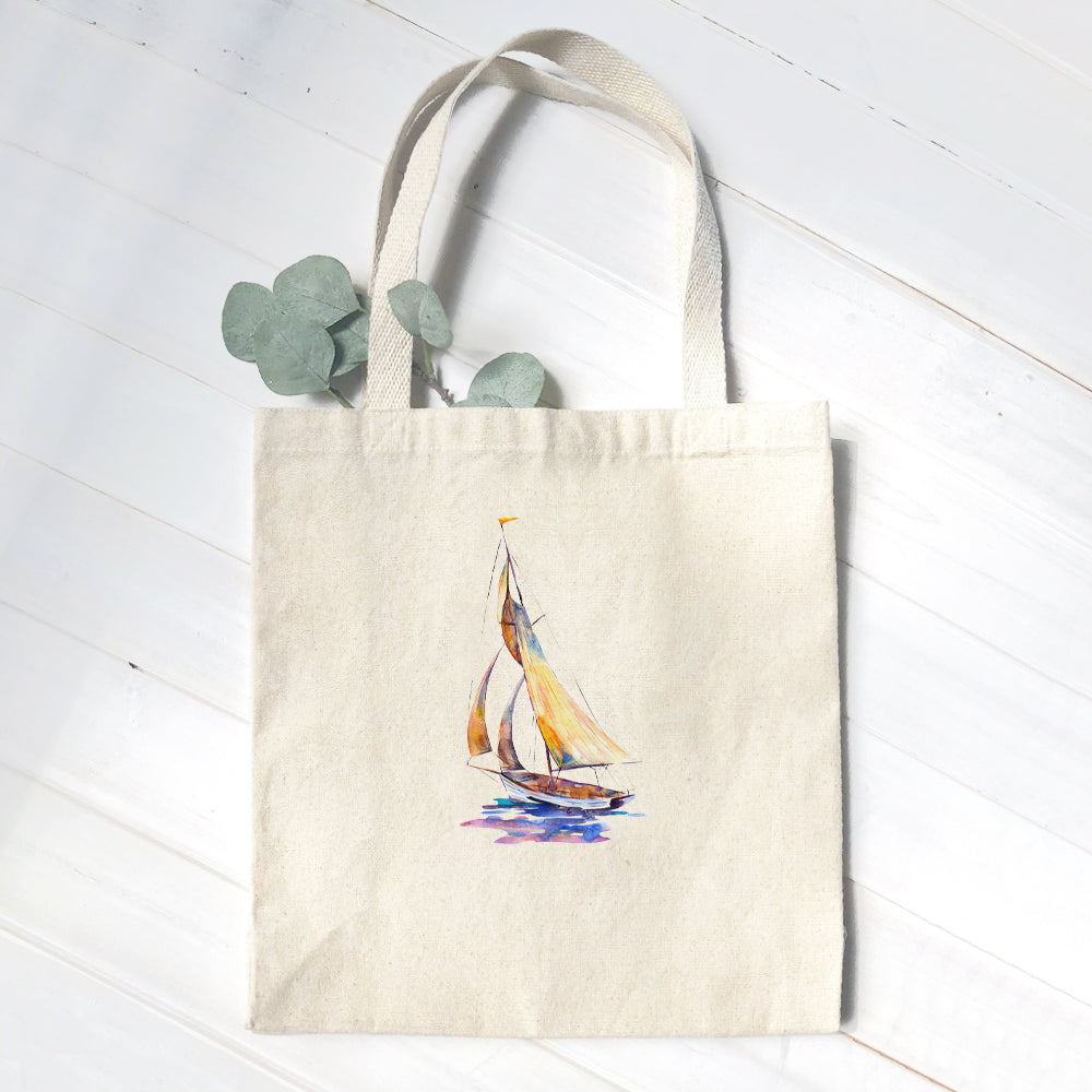 Watercolor Sailboat (Orange) - Canvas Tote Bag