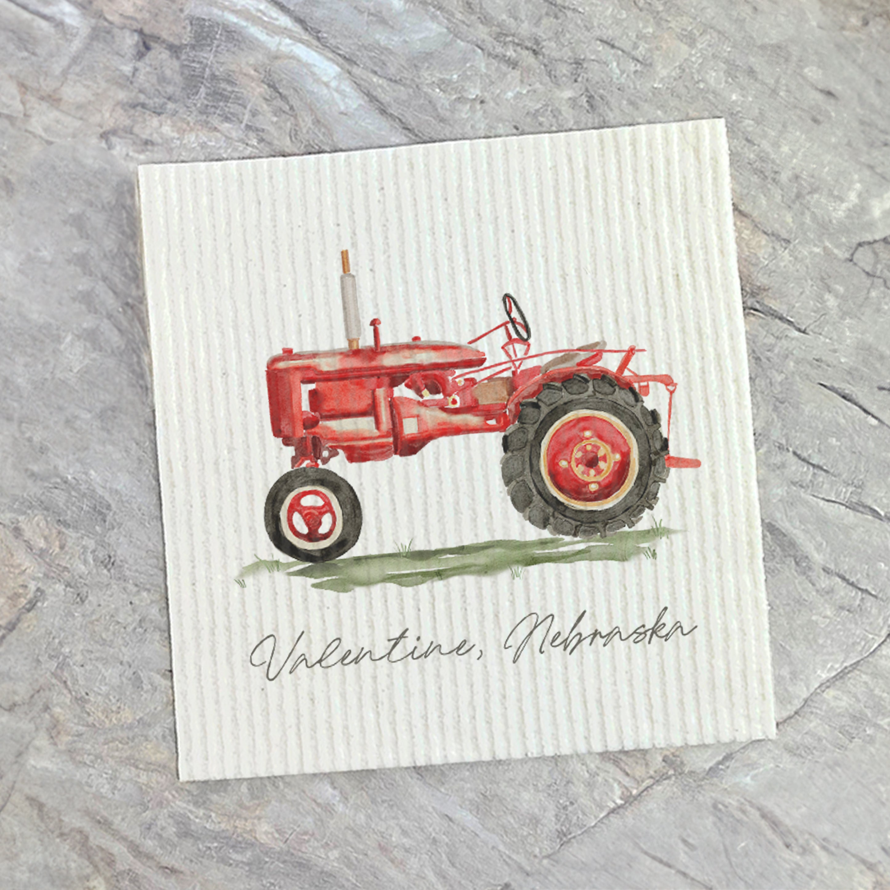 Watercolor Tractor - Custom Swedish Dish Cloth