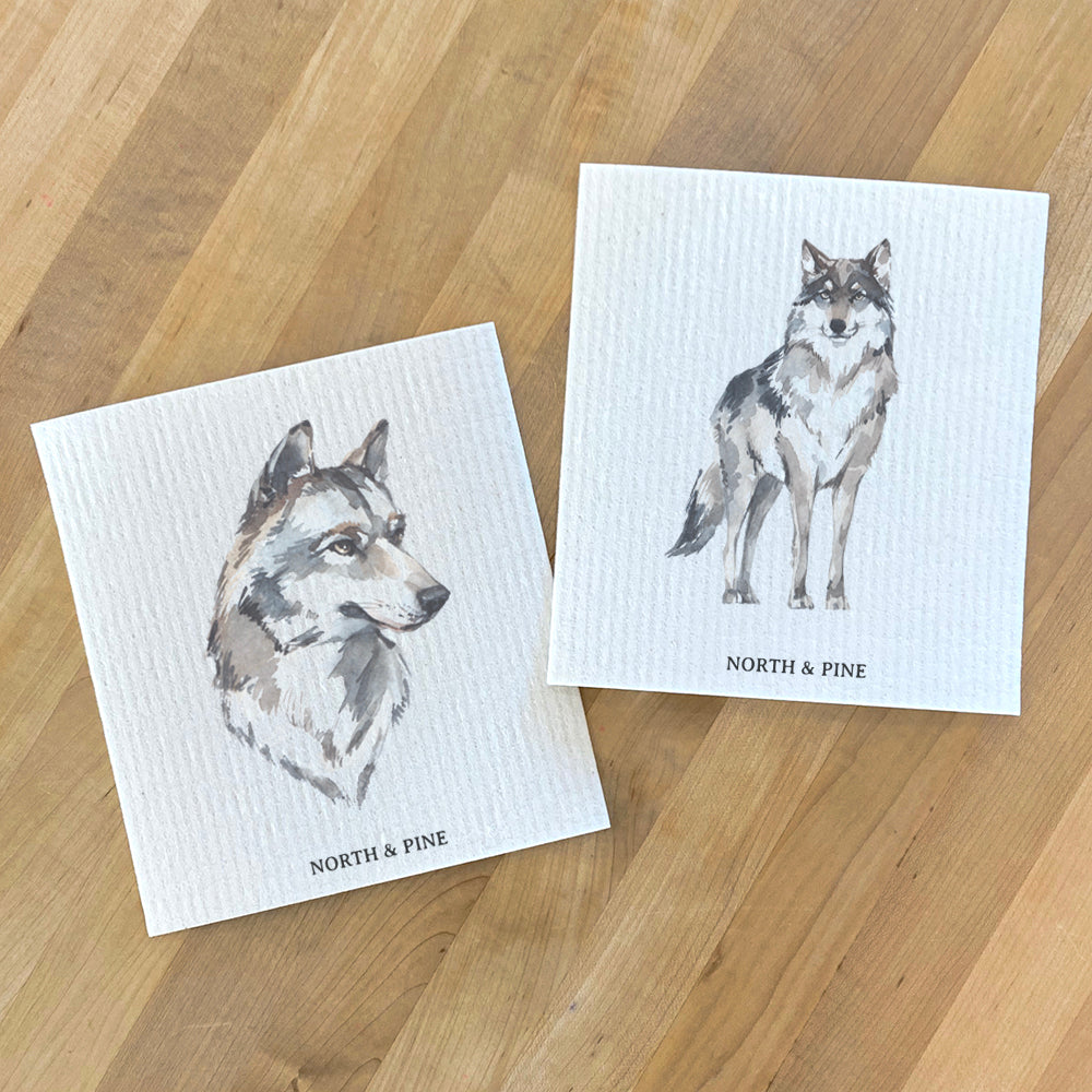 Watercolor Wolves - 2pk Swedish Dish Cloth