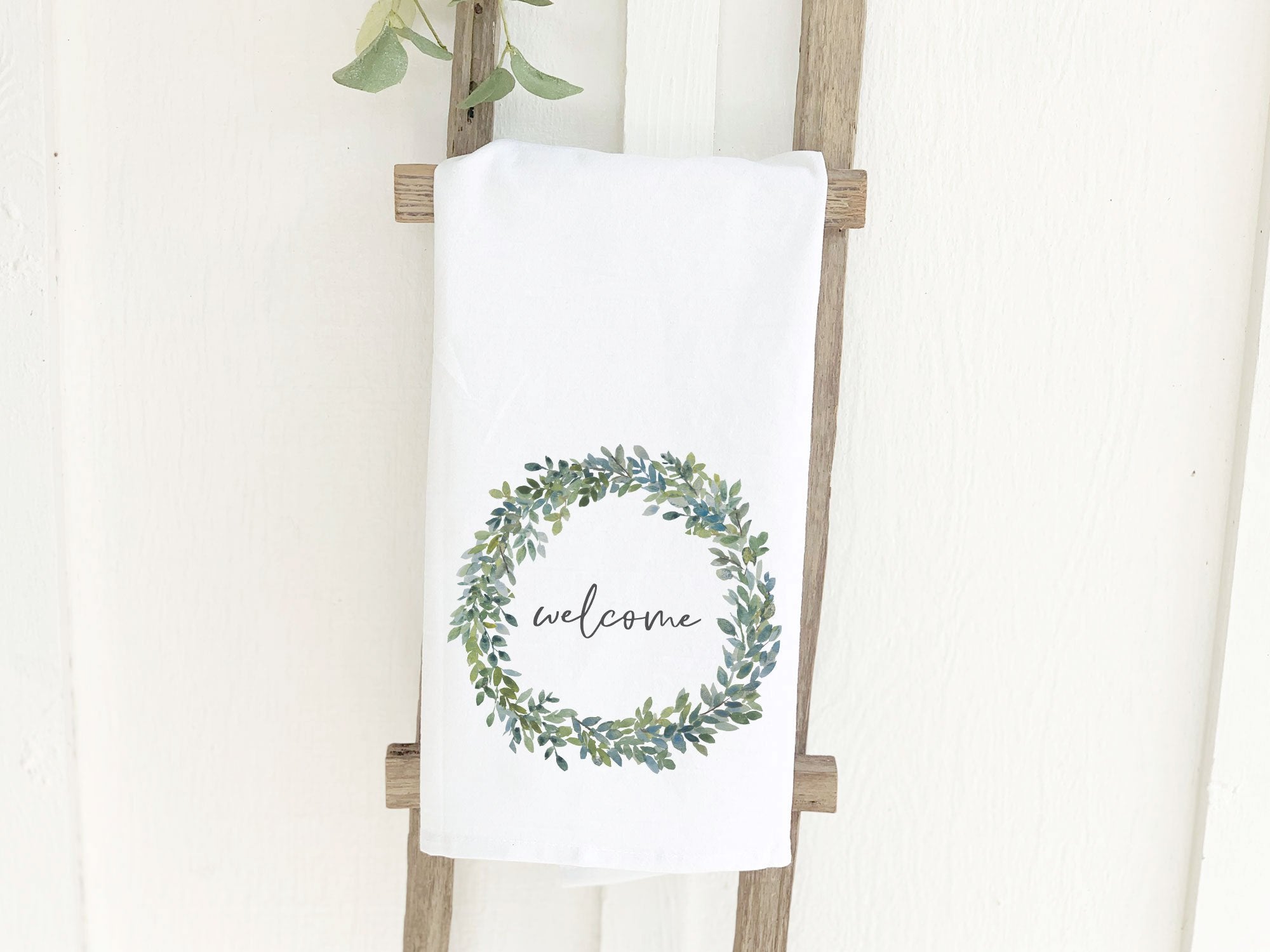 Welcome Boxwood Wreath - Cotton Tea Towel