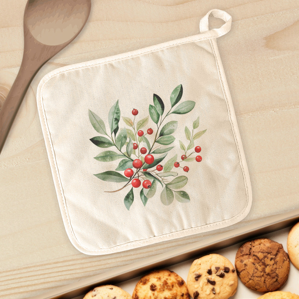 This cotton and terry cloth pot holder's convenient square shape makes it perfect to use as a hot pad to protect counters and tabletops from hot cookware and to use while handling pots and pans on the stovetop. Our beautiful designs are printed-to-order in rural Wisconsin using vibrant water-based inks.