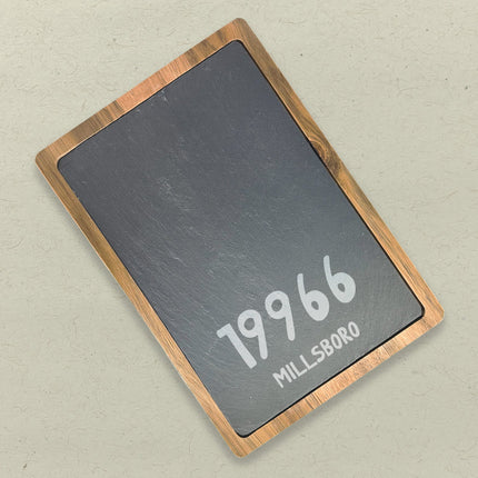 Designed to impress, these slate serving boards combine the natural warmth of acacia wood with the sleek texture of slate. Durable and stain-resistant, they're ideal for charcuterie boards, cheese platters, small bites or a thoughtful housewarming gift. A beautiful and functional display piece for any kitchen or gathering. Hand wash only.